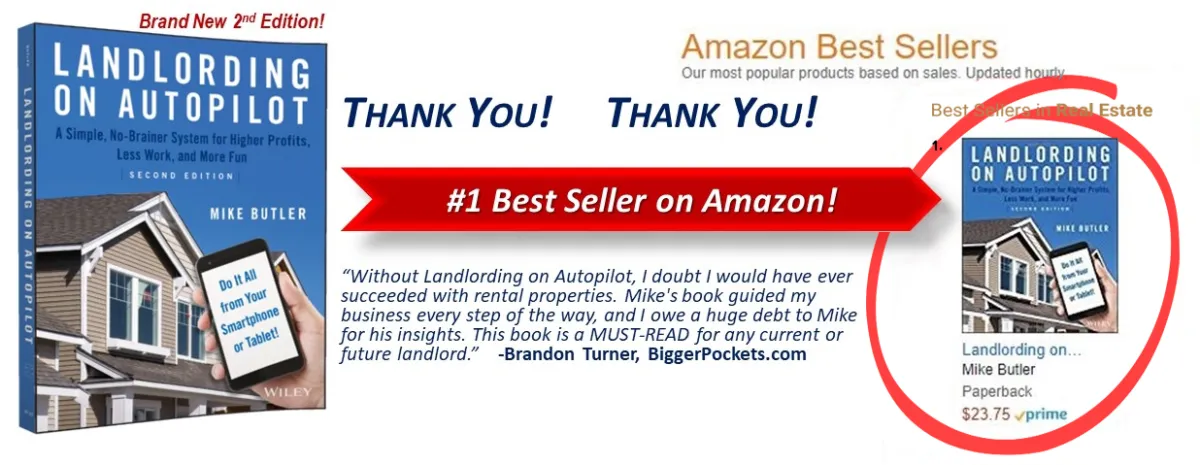 Mike Butler authored the book “Landlording on Autopilot” and made the #1 Best Seller Business Books on Amazon.